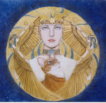 2001Godin van de maan. Vergezeld door twee figuren van Maat, godin van balans en rechtvaardigheid