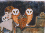 2008Godin van de nacht vergezeld door twee uilen. Details in bladgoud