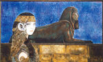 2001Tegen het magisch blauw van een betoverende nacht tekent zich het silhouet af van de sfinx, zijn blik in de oneindigheid. De ogen van de godin en de uil hebben zowel een meditatieve als open blik. Heden en verleden zijn verenigd