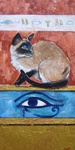 2007Het waakzame blauw van de ogen van de kat komt terug in het blauw van het beschermende horusoog Geen lijst nodig, om de rand geschilderd. Details in bladgoud en blauw glas