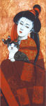 Het japanse werk is voornamelijk gebaseerd op figuren uit het kaboeki-theater Ook hier staan vrouwen met dieren of vogels centraal
