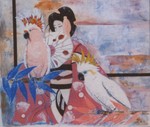 Geisha and peacock